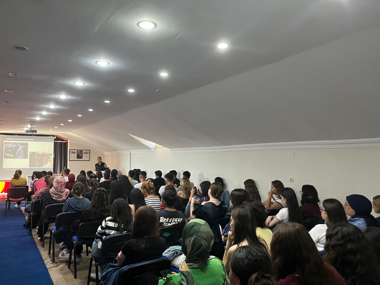 30 Eylül 2025 Salı günü saat 14:00'de Yüksekokulumuz Konferans Salonunda Dalaman Narkotik Şube Müdürlüğü tarafından öğrencilerimize ''NARKOGENÇLİK'' Bağımlılıkla Mücadele Eğitimi verilmiştir.